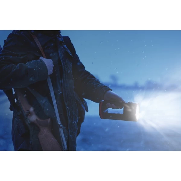 Der HS20R Pro ist ein robuster Handscheinwerfer für viele Einsatzbereiche wie Industrie, Gewerbe, Jagd oder Sicherheitsdienste. Diese professionelle Arbeitsleuchte sorgt mit einem Lichtstrom von bis zu 1700 Lumen immer für ausreichende Helligkeit. Die Reichweite von bis zu 470 Metern qualifiziert sie dabei für so gut wie jeden Einsatzzweck. Mehrere LEDs sorgen für gleichmäßige Ausleuchtung im Fern- und Nachbereich. Mit dem fest verbauten Akku, der über einen micro-USB-Anschluss aufgeladen wird, kommt die HS20R Pro auf eine Leuchtdauer von bis zu 100 Stunden. Über die Modus-Taste ist diese Leuchte zudem stufenlos dimmbar. Mit dabei ist auch eine blinkende Warnlicht-Funktion, die über die beiliegende orangene Farbfilterscheibe realisiert wird. Mit im Lieferumfang ist auch eine Ladestation mit Wandhalterung.Art.-Nr.: 1847078