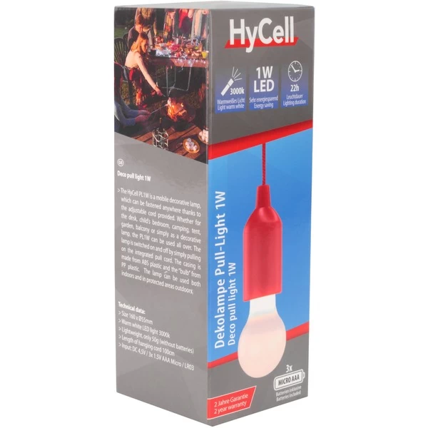 Das Pull-Light PL1W von Ansmann ist eine praktische Dekoleuchte mit kabelloser LED-Glühbirne und Kordel-Zugschalter. Sie wird mit 3 Micro-AAA-Batterien betrieben und erreicht eine Leuchtdauer von bis zu 22 Stunden. Die warmweiße LED erzeugt dabei einen Lichtstrom von 25 Lumen.Art.-Nr.: 1847100