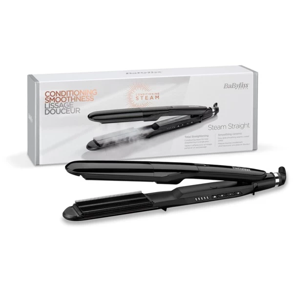 Der BaByliss Steam Straight ST492E Haarglätter ist ein professionelles Salonglätteisen, welches das Haar mit Feuchtigkeit versorgt und dazu schützend und mühelos durch Wasserdampf glättet. Dadurch können langanhaltende, glänzende Looks selbst bei dickem, widerspenstigem Haar kreiert werden. Der Haarglätter verfügt über extra breite keramikbeschichtete Platten und einen Kammaufsatz für müheloses Glätten in einem Zug. Die Temperatur lässt sich präzise in fünf Stufen von 150 bis 235 °C einstellen. Dazu sorgt das Advanced Ceramics Heizsystem für eine gleichmäßige, konstante Wärmeverteilung. Für ein komfortables Styling verfügt der Steam Straight außerdem über ein 2,5 Meter langes Kabel mit Drehgelenk. Im Lieferumfang enthalten ist auch eine Hitzeschutzmatte zur sicheren Verwendung.Art.-Nr.: 1721581