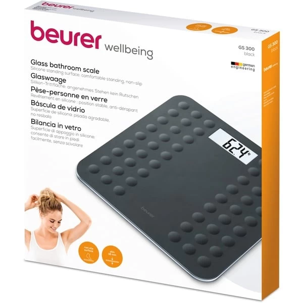 Die Personenwaage GS 300 von Beurer überzeugt durch ihr zeitloses Design und einer Wiegefläche aus Sicherheitsglas mit rutschhemmender Silikonoberfläche. Die gut ablesbare LCD-Anzeige besitzt eine Ziffernhöhe von 30 mm. Zu den Highlights der GS 300 gehören eine Überlastungsanzeige sowie eine Ein- und Abschaltautomatik.Art.-Nr.: 1349636