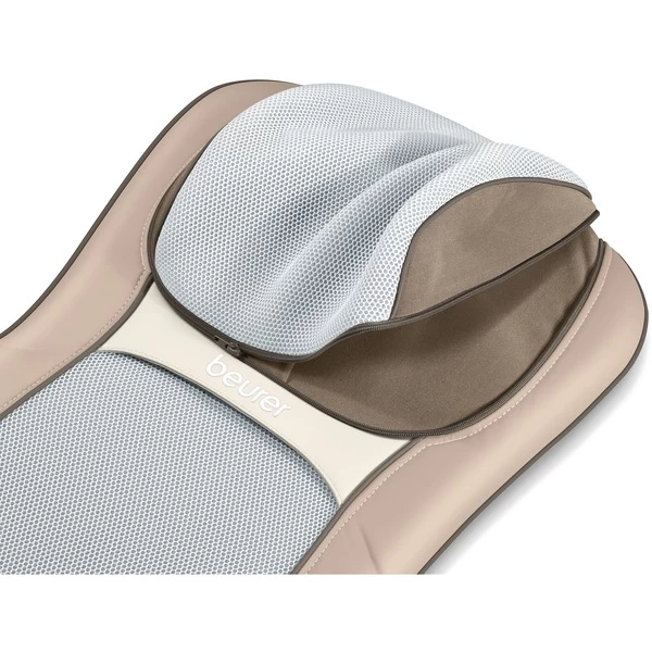 In der Shiatsu-Sitzauflage MG 295 von Beurer befinden sich rotierende Massageköpfe, die die Druck- und Knetbewegungen einer Shiatsu-Massage nachahmen. Das Gerät mit vier rotierenden Massageköpfen bietet eine tiefenwirksame 3D Rückenmassage für den gesamten Rücken. Der Bereich der Nackenmassage ist höhenverstellbar und die Laufrichtung ist wählbar. Der Schalensitz hat eine ergonomische Form mit gepolstertem Sitz und Lendenbereich. Bedient wird die Sitzauflage einfach über einen Handschalter. Die Bezüge am Nacken und Rücken sind maschinenwaschbar bei 40°C. Zudem hat die Beurer Massage-Sitzauflage MG 295 eine zuschaltbare Licht- und Wärmefunktion sowie eine Abschaltautomatik nach 15 Minuten. Mit flexiblen Befestigungsbändern kann die Sitzauflage befestigt werden. Zum einfachen Verstauen im Schrank hat die Shiatsu-Sitzauflage eine praktische Aufhängevorrichtung.