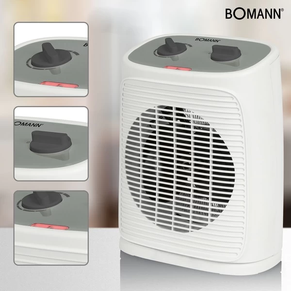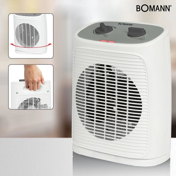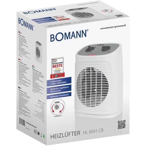 Wohlige Wärme oder erfrischende Brise – der praktische Heizlüfter HL 6041 CB von Bomann sorgt für optimale Luftzirkulation und mobile Wärme Zuhause oder im Büro. Die Luft wird mit Hilfe des leistungsstarken Gebläses schnell und gleichmäßig im Raum verteilt. Für eine breite und gleichmäßige Wärmeverteilung rotiert der Heizlüfter von einer Seite zur anderen. Bei Bedarf ist die Oszillation auch abschaltbar. Neben zwei Heizstufen, einer Kaltstufe und einem stufenlos regelbaren Thermostat überzeugt das Gerät mit einem sicheren Stand, einem stabilen Tragegriff, einem Sicherheitskontaktschalter sowie einem Überhitzungsschutz.Art.-Nr.: 1674685