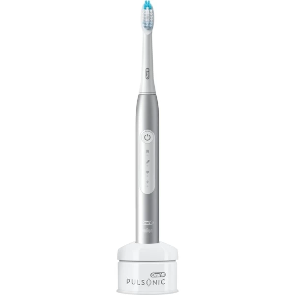 Überlegene Plaque-Entfernung für ein strahlendes Lächeln! Die Oral-B Pulsonic Slim Luxe 4000 Schallzahnbürste entfernt mit sanfter Schalltechnologie und 31.000 Bürstenkopfbewegungen mehr Plaque als eine herkömmliche Handzahnbürste. Der längliche Bürstenkopf sorgt mit vibrierenden, abgerundeten Borsten für eine sanfte Reinigung und weißere Zähne. Die Pulsonic Slim Luxe verfügt über drei Reinigungsstufen für eine gründliche Standardreinigung, eine sanftere Pflege oder eine Aufhellung der Zähne. Der professionelle Timer erinnert zusätzlich daran, die von Zahnärzten empfohlene Putzzeit von 2 Minuten einzuhalten.Art.-Nr.: 1656220