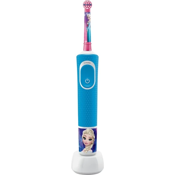 Die Oral-B Vitality 100 Kids elektrische Zahnbürste für Kinder ab 3 Jahren sorgt mit Disney Frozen-Figuren für Spaß beim Zähneputzen und gleichzeitig für eine sanfte, effektive Reinigung. Mit dem einzigartigen, kinderfreundlichen Sensitiv-Modus wird das empfindliche Zahnfleisch geschützt und die Zähne sanft gereinigt. Die Zahnbürste kann zudem mit der Disney Magic Timer-App von Oral-B verwendet werden. Sie hilft den Kindern, die von Zahnärzten empfohlene Putzzeit von 2 Minuten einzuhalten und sich spielerisch an eine Mundpflege zu gewöhnen, die ihnen ein Leben lang zugutekommt. Im Lieferumfang sind 4 Frozen-Sticker enthalten, um das eigene Handstück individuell zu gestalten.Art.-Nr.: 1575991