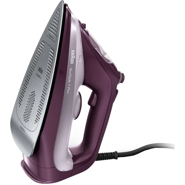 Das Dampfbügeleisen TexStyle 7 SI 7181VI ist mit der 3D EloxalPlus Bügelsohle ausgestattet. Die nach oben gewölbte Bügelsohle sorgt für 360°-Gleitfähigkeit über jeden Stoff, über jedes Hindernis – selbst rückwärts. Damit bleibt man nicht mehr an Knöpfen und Taschen hängen. Die Kombination aus 3100 Watt und dem kraftvollem Dampfausstoß beseitigt selbst hartnäckige Falten schnell und einfach. Das digitale Anti-Tropf-System macht Schluss mit Wasserflecken und Auslaufen beim Bügeln. Die automatische Sicherheitsabschaltung sorgt dafür, dass das Dampfbügeleisen automatisch abgeschaltet wird, wenn es sich acht Minuten unbenutzt in aufrechter oder 30 Sekunden in horizontaler Position befindet. Somit wird nicht nur die Sicherheit erhöht, sondern sie hilft auch dabei, Strom zu sparen. Mit dem Turbo-Dampfstoß lassen sich schwierige Bereiche, wie Knopfleisten, Krägen und Taschen, jetzt ganz einfach bügeln. Die Präzisionsspitze entfernt schnell und effizient kleine Falten an schwer erreichbaren Stellen. Die Dampfleistung kann auf 230 g/Min. erhöht werden. Dies ist ideal um auch Falten in Vorhängen und hängender Kleidung schnell und einfach durch vertikales Abdampfen zu entfernen.Art.-Nr.: 1837582