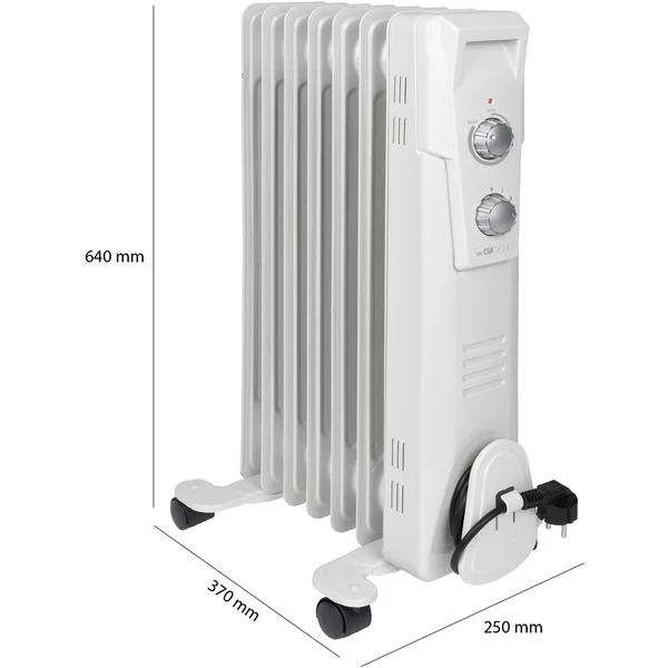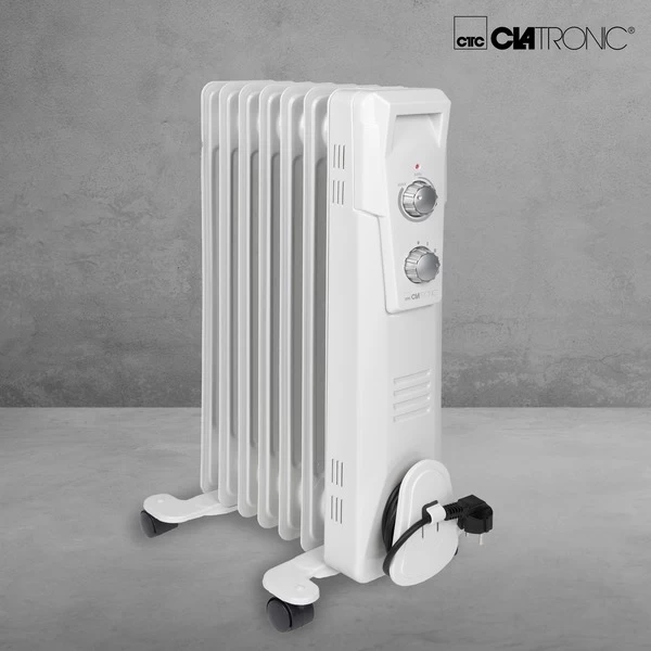 Der Clatronic Ölradiator RA 3735 besitzt sieben Heizrippen zum effektiven Heizen von beispielsweise Schlafzimmer, Büro und Hobbyraum. Über drei Leistungsstufen (600 / 900 / 1.500 Watt) und einen Thermostatregler lässt sich das Gerät den individuellen Bedürfnissen anpassen. Durch die schmale Silmline Bauweise ist der Ölradiator 3735 besonders platzsparend. Dabei ist er im Einsatz, dank vier Leichtlaufrollen, praktischer Griffmulde und Kabelaufwicklung flexibel. Ein integrierter Überhitzungsschutz und Kippsicherung zur automatischen Abschaltung sorgen für maximale Sicherheit.Art.-Nr.: 1588218