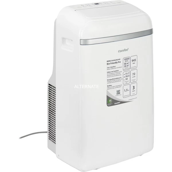 Das Eco Friendly Pro von Comfeè ist ein mobiles Klimagerät, das sich für Räume bis maximal 34 m² eignet. Durch das natürliche Kältemittel R290, Energieeffzienzklasse A+ und eine 10.000 BTU starke Kühlleistung arbeitet das Gerät umweltfreundlich und effizient. Es wälzt bis zu 420 m³ Luft in einer Stunde um. Das LED-Display und eine Fernbedienung ermöglichen eine einfache Bedienung. Art.-Nr.: 1756211