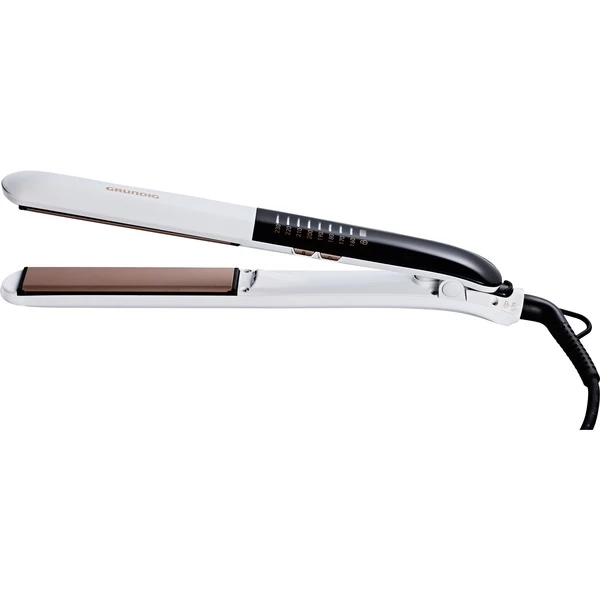 Der Grundig HS 7831 Touch-Control Ionic Straight & Curls Haarglätter bietet modernes und flexibles Styling für einen glatten, glänzenden Look, geformte Spitzen sowie weich fallende Wellen und Locken. Die keramikbeschichteten Platten sorgen für eine konstant hohe Temperatur, eine gleichmäßige Wärmeverteilung und bieten haarschonendes Styling für glänzendes Haar. Die beweglich gelagerten Platten verteilen den Druck gleichmäßig auf dem Haar und glätten und locken es ohne zu strapazieren. Der Haarglätter ist zudem mit einer Ionic-Funktion ausgestattet, die dem Haar zusätzlich brillanten Glanz und Geschmeidigkeit verleiht. Die Touch-Control Temperaturauswahl mit acht Temperatureinstellungen von 160 bis 230 °C ermöglicht das professionelle Styling verschiedener Haartypen.Art.-Nr.: 1475453