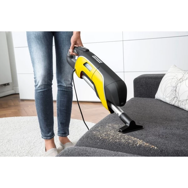 Der beutellose Bodenstaubsauger Kärcher VC 5 verbraucht 20 kWh im Jahr und geht somit in die Energieeffizienzklasse A ein. Seine Geräusch-Emission beträgt 77 dB(A) und die Leistung beläuft sich auf 500 Watt. Das Modell verfügt über eine Leistungsregulierung mit vier Saugstufen sowie über ein Filterreinigungssystem bei Öffnung und Entnahme. Die Staubfilterbox des Bodenstaubsaugers Kärcher VC 5 ist leicht entnehmbar. Im Lieferumfang sind enthalten: eine umschaltbare Bodendüse mit flexiblem Gelenk, eine Polsterdüse sowie ein HEPA-Filter. Der Bodenstaubsauger Kärcher VC 5 ist für verschiedene Oberflächen geeignet: Parkett, Laminat, Fliesen, Teppich, Polster und Polstermöbel.Art.-Nr.: 1323956