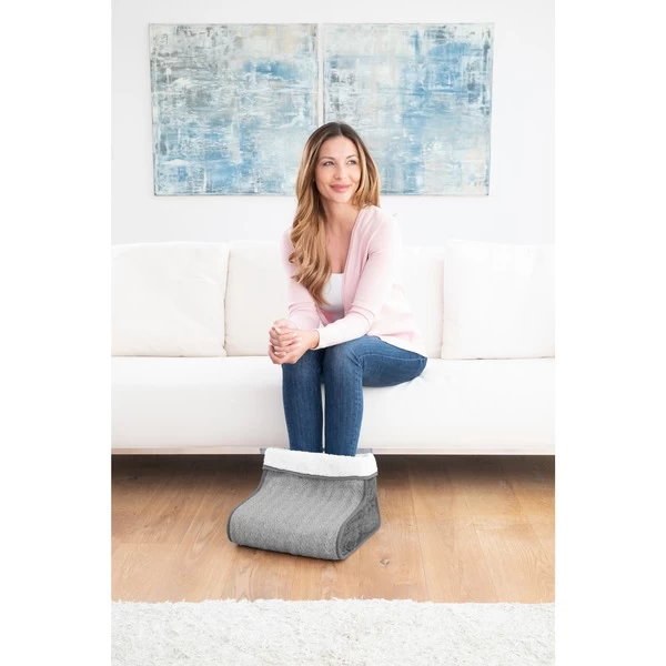 Für müde Füße und kalte Wintertage eignet sich der Fußwärmer FW 150. Mit seiner Oberfläche in moderner Strickoptik stellt der FW 150 einen echten Hingucker dar. Drei verschiedene Temperaturstufen und ein besonders flauschiges, abnehmbares Innenfutter sorgen für wohltuende Wärme und Gemütlichkeit. Zu überzeugen weiß der Fußwärmer auch in Sachen Sicherheit: Das integrierte Sicherheitssystem ist mit einem Überhitzungsschutz ausgestattet.
