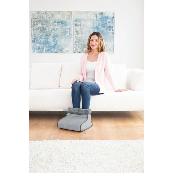 Der Fußwärmer FW 100 sorgt an kalten Wintertagen dank der schnellen direkten Aufwärmung und dem flauschig weichen Innenfutter für angenehme Wärme. Über das Bedienelement kann zwischen zwei Temperaturstufen gewählt werden und bei Bedarf eine angenehme Vibrationsmassage zugeschaltet werden. Der Fußwärmer verfügt über einen großen Fußraum und eignet sich für Füße bis Schuhgröße 46. Das Innenfutter ist bei 30°C maschinenwaschbar.Art.-Nr.: 1688185