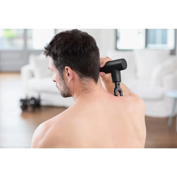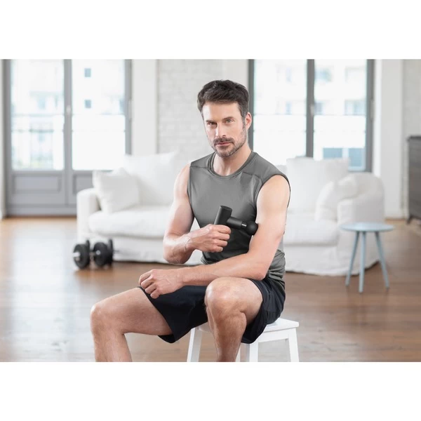 Die Massage Gun Mini MG 150 dient zur Selbstmassage an verschiedenen Körperstellen und bietet durch ihren ergonomischen Silikongriff einen besseren Halt während der Anwendung. Sie verfügt über 5 leistungsstarke Vibrationsstufen für eine tiefe Muskelstimulation und 6 Massageaufsätze für die unterschiedlichen Massageeffekte. Die MG 150 Massagegun Mini eignet sich zur Selbstmassage an verschiedenen Körperstellen, wie Schultermuskeln, Brustmuskeln, Rückenmuskeln, Gesäßmuskeln, Oberschenkelmuskeln, Wadenmuskeln etc. Ein kleiner Motor sorgt für geringes Gewicht bei gleichbleibend kraftvoller Leistung und längerer Lebensdauer. Die kleine Reißverschlusstasche zur einfachen und praktischen Aufbewahrung ist perfekt für den Einsatz zu Hause, auf Reisen oder beim Training.