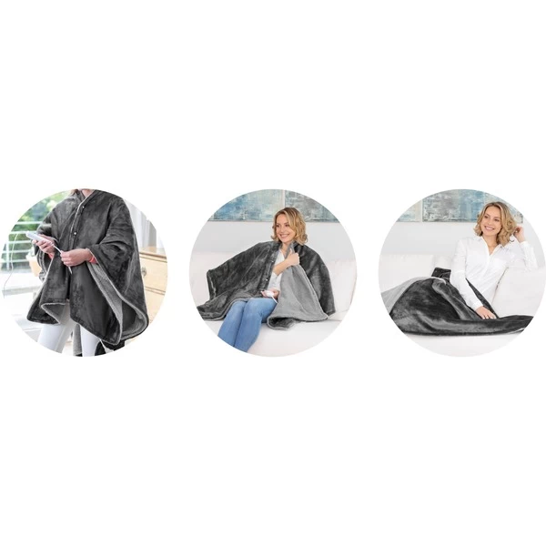Die Besonderheit der HB 677 Wärmedecke 3 in 1 ist die flexible, multifunktionale Anwendung als Überwurf, Poncho oder klassisch als Wärmedecke. Die komfortable Größe von 160 x 130 cm sowie das angenehm weiche Material aus Fleece sorgen für Gemütlichkeit und wohlige Wärme. Drei wählbare Temperaturstufen, ein integriertes Sicherheitssystem mit Überhitzungsschutz und die automatische Abschaltung nach 180 Minuten sorgen für eine entspannte Auszeit. Das Obermaterial ist dank des abnehmbaren Bedienelementes waschbar. Art.-Nr.: 1688219