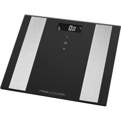 Die PC-PW 3007 FA von ProfiCare ist eine 8 in 1 Analysewaage. Sie misst nicht nur das Gewicht mit einer Genauigkeit von 100 Gramm, sie gibt auch Körperfettanteil, Wasseranteil, Muskelmasse, Knochengewicht, Organfett, Kalorienverbrauchpro Tag (BMR) sowie des BMI-Wertes (Körpermassindex) aus. Die hochwertige Sicherheitsglasoberfläche mit Edelstahleinlage misst ca. 30 x 30 cm und ist hygienisch und kratzfest. Die PC-PW 3007 FA ist mit einem gut ablesbaren Multifunktions-LCD-Display und moderner Sensor Touch-Bedienung ausgestattet. Die Diagnosewaage hat einen Messbereich von 5 – 180 kg in 100 g-Schritten und speichert die Daten von bis zu zehn Personen. Die Step-On- und Abschaltautomatik erleichtern die Bedienung und helfen Batterien zu sparen. Für einen sicheren Stand sorgen die Anti-Rutschfüße. Art.-Nr.: 1561478
