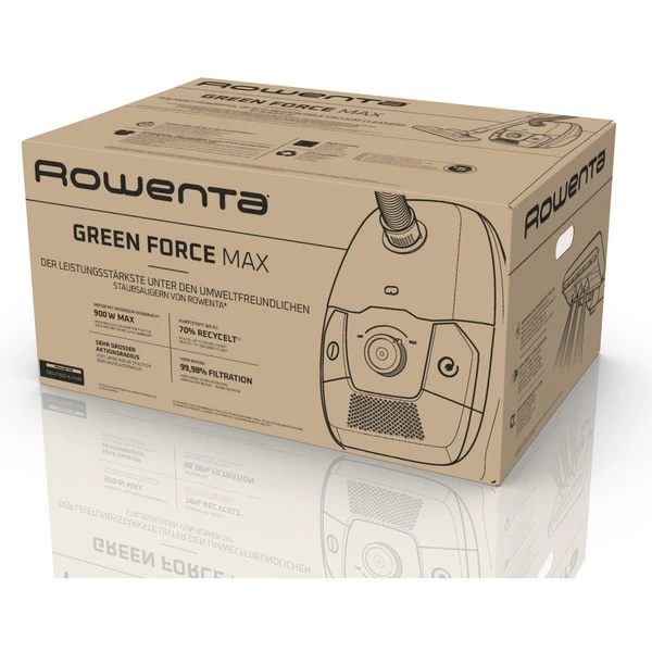 Der Green Force Max von Rowenta ist ein Staubsauger mit einem leistungsstarken Motor. Der Staubsauger eignet sich für alle Bodenarten. Das dreistufige Filtersystem mit HEPA-Filter sorgt für eine saubere Abluft. Der Hygiene+ Beutel sorgt für ein hygienischeres Beutelwechselsystem, das jeden Kontakt mit dem Staub vermeidet. So ist der Green Force Max auch für Allergiker geeignet. Art.-Nr.: 100007900