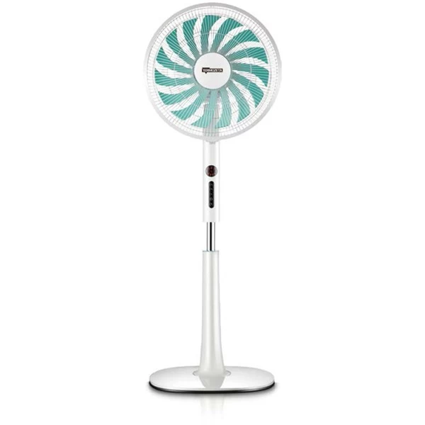 Der Standventilator Airzeta von Termozeta sorgt an heißen Tagen für die nötige Abkühlung. Der Ventilator ist in der Höhe verstellbar, verfügt über vier Geschwindigkeitsstufen, 15 Rotorblätter, einen Timer und eine Fernbedienung. Die automatische Oszillationsfunktion kühlt den ganzen Raum. Außerdem hat der Airzeta-Ventilator ein elegantes Design mit weißer Oberfläche.Art.-Nr.: 1539911