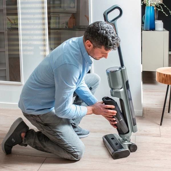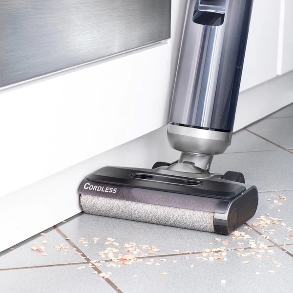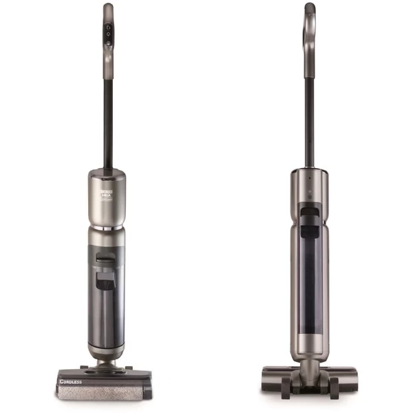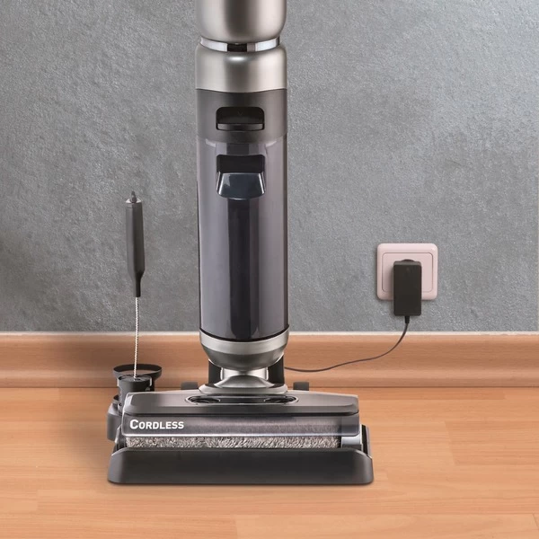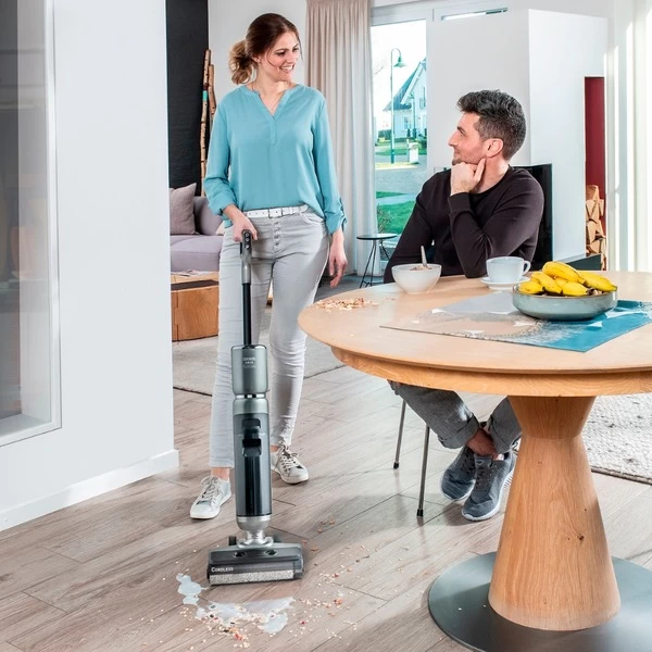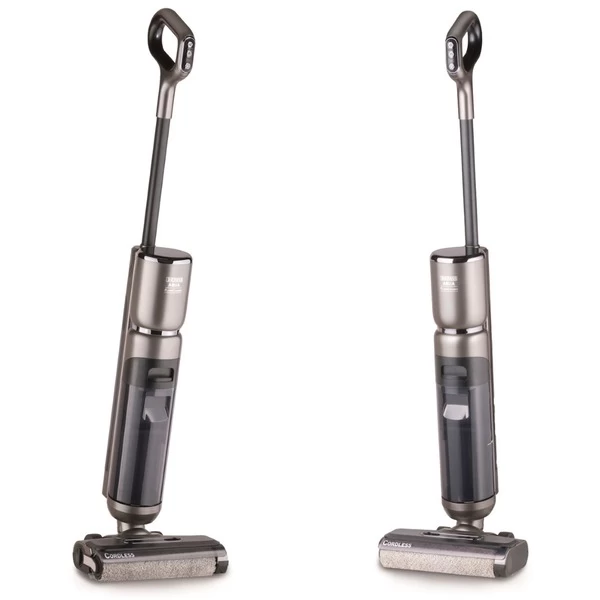Mit dem Thomas AQUA FloorCleaner Cordless Hartbodenreiniger ist feuchtes Wischen und Saugen erfrischend einfach. Er eignet sich für alle Hartböden, insbesondere für Holz- und Kunststoffböden wie Parkett und Laminat. Es reinigt nicht nur gründlich, sondern trocknet auch, so dass der Raum sofort wieder benutzt werden kann. Auf dem LED-Display hat man alle Informationen jederzeit im Blick. Zusätzlich sagt der Sprachassistent (Deutsch/Englisch), was zu tun ist. Entlang von Sockelleisten und Möbelkanten reinigt er effektiv bis dicht an den Rand. Die getrennten Tanks für Frisch- und Schmutzwasser sorgen dafür, dass kontinuierlich mit sauberem Wasser gewischt wird. Über die Reinigungswalze gelangt ständig Frischwasser auf den Boden. Das Wischwasser wird in den Schmutzwassertank geleitet. Mit einem Klick lassen sich beide Behälter einfach entnehmen und nach dem Befüllen oder Entleeren wieder einsetzen und verriegeln. Auf Knopfdruck reinigt der AQUA FloorCleaner Cordless nach dem Wischen automatisch Saugschlauch und Reinigungswalze.Art.-Nr.: 100002455