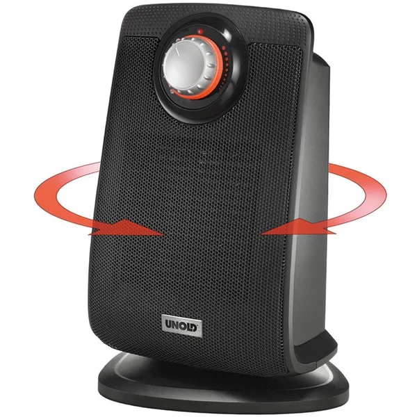 Der Keramik-Heizlüfter Bad 86445 von Unold kann wie sein Name schon verrät, gefahrlos im Bad aufgestellt werden. Die Heizleistung des Keramik-Heizlüfter Bad kann je nach belieben auf 1.300 oder 2.000 Watt eingestellt werden. Über das stufenlose Thermostat kann die Temperatur dem Bedürfnis entsprechend angepasst werden und zur verbesserten Luftverteilung dreht er sich um 75 Grad oszillierend. Mit Überhitzungs- und Kipp-Schutz ausgestattet, ist das kompakte Gerät mit integriertem Tragegriff im stabilen Kunststoffgehäuse durch die Schutzklasse IP21 tropfwassergeschützt und damit ideal für Räume, in denen Feuchtigkeit entsteht.Art.-Nr.: 1097688